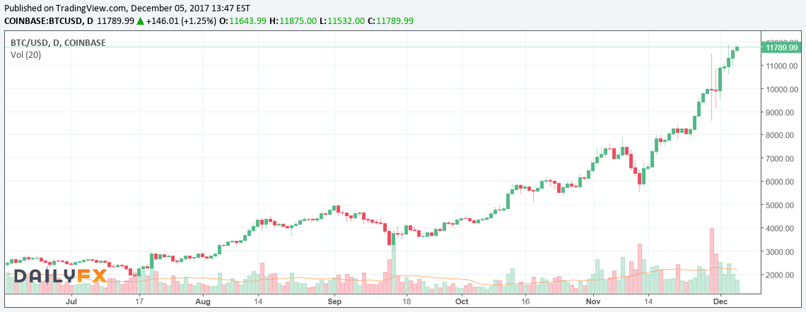 Yesterday, Bitcoin closed at the all time high of $11,643.98.  Today, it continued to move higher.  It’s so close to $12.000.  Currently, it is at $11789.99.  The all time high is $11,891 registered on Sunday.  Could today be today that the $12,000 mark is concurred?