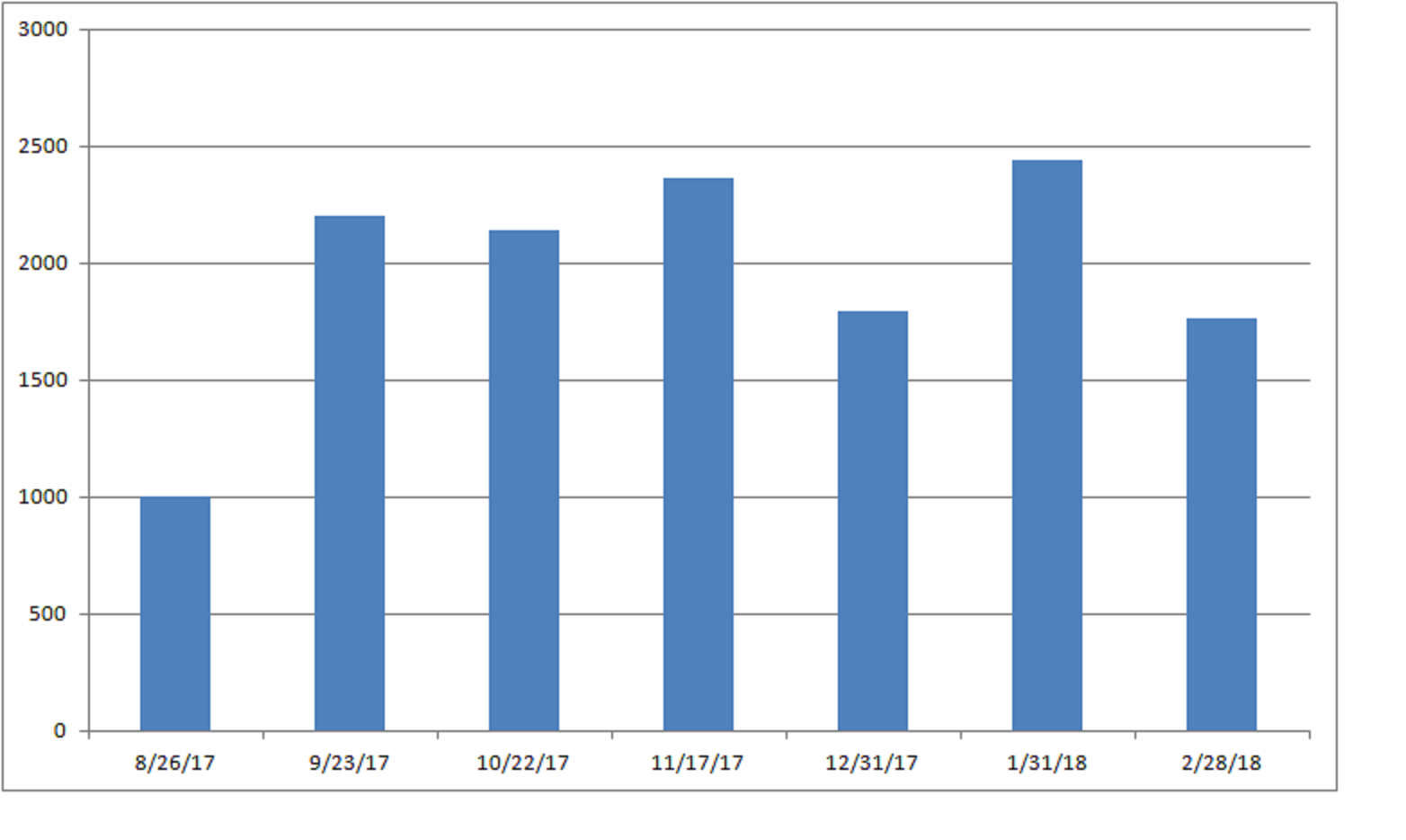 We are currently showing a profit of $1,759 minus interests and fees as of February 28, 2018. This gives us an average profit of $251.28 per month.