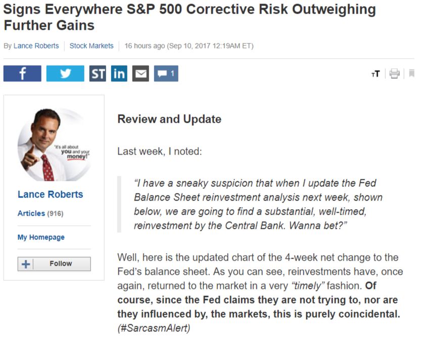 People have been talking about the correction of the market for months. Well, it never happened. North Korea? No. The political uncertainty? No. The Fed’s tightening policy? No. The market was unmoved by all of these events.