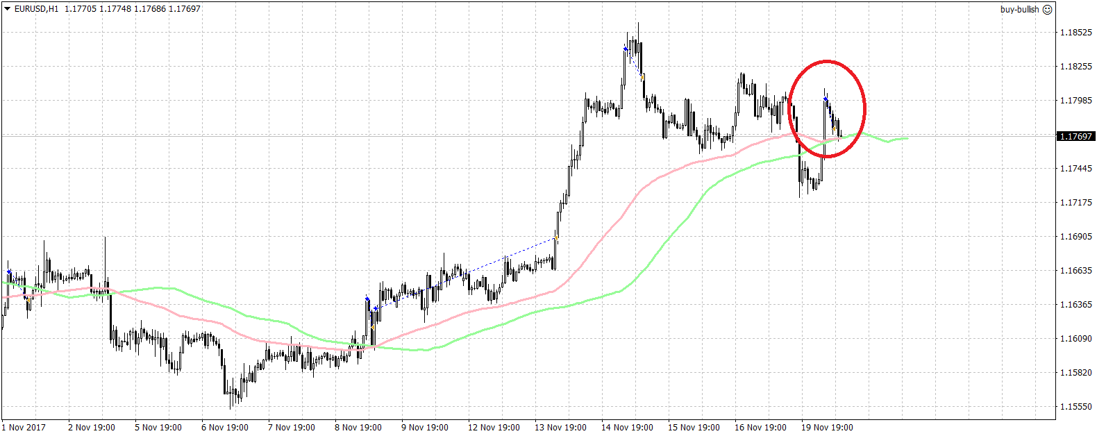 The euro moved higher during the European session and triggered a buy at that time in my MT4 EA, and it ended up with a loss.