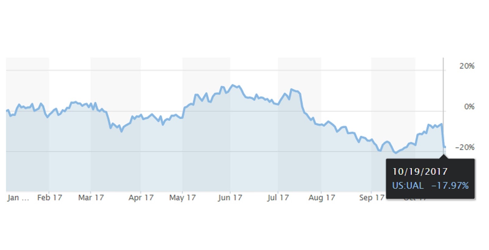 United’s stock is down nearly 18 percent year to date while Delta gained more than 6 percent and American rose more than 10 percent.
