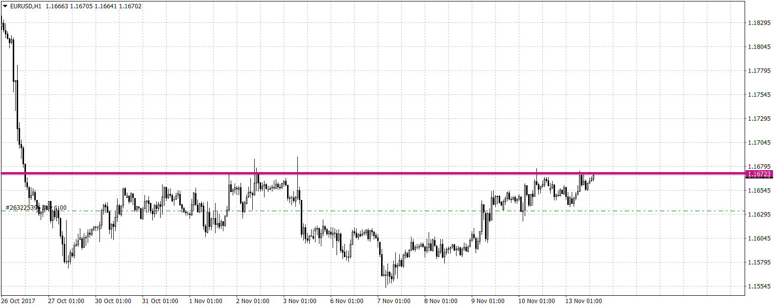 The euro seemed to be building the short-term bottom between 1.1554 and 1.1660.